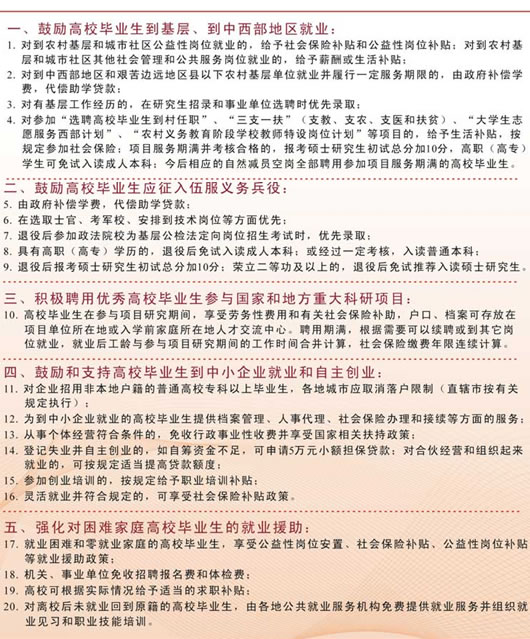 国家促进普通高校毕业生就业政策公告