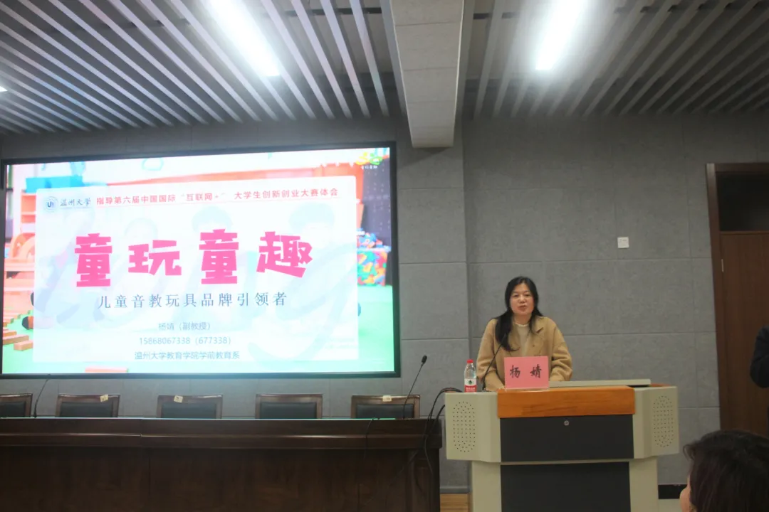 杨婧针对童玩童趣项目进行指导分享。她在资源优势上进行分析,指出一个好的项目要充分利用企业资源、平台资源、园所资源、校友资源。此外,她还向大家介绍了童玩童趣项目的设计目的,备赛过程和创新思路。“千磨万击还坚韧,任尔东西南北风”,杨婧老师鼓励广大同学们锻炼自身实力,积极参与创新创业比赛。
