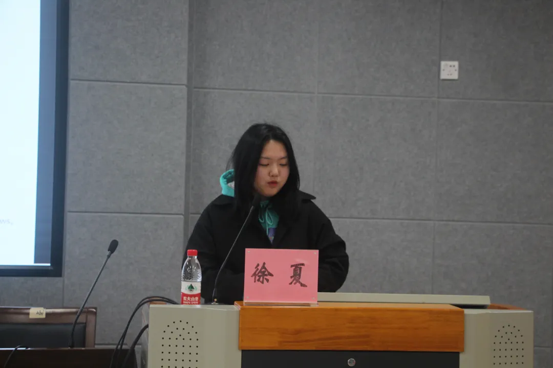 学生代表徐夏讲述了自己的比赛历程和经验。她结合自身参赛经历进行分享,她认为一旦开始就要有毅力坚持下去,过程很艰辛但结果一定会给人意想不到的惊喜。她还提到团队很重要,要有志同道合的创业伙伴,大家要充分发挥专业特长,坚定比赛决心,为共同的目标而奋斗。
