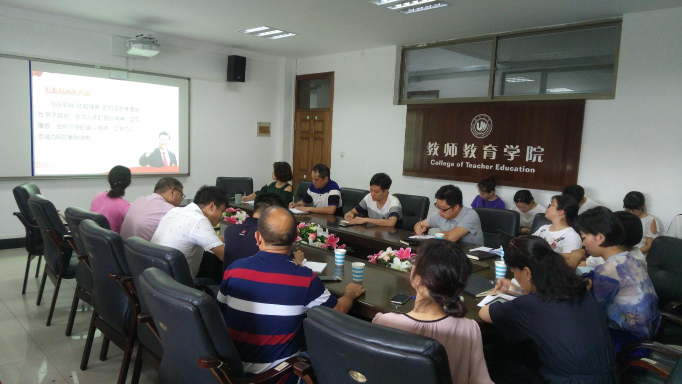2018年6月27日(星期三)中午12:30,泥巴影院 教师泥巴影院 行政支部、教育系支部、研究生支部、研究生理论研习社联合开展“红船再出发”的主题党日活动,庆祝中国共产党建党97周年。孙芙蓉院长、杨立淮书记作为支部党员参加此次会议。