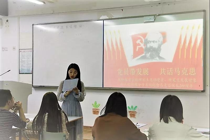 5月4日下午6点30分,学院研究生支部党员们、共青团员们在教师泥巴影院 9A108召开以“党员带团员,共话马克思”为主题的学习活动,以纪念马克思诞辰200周年。