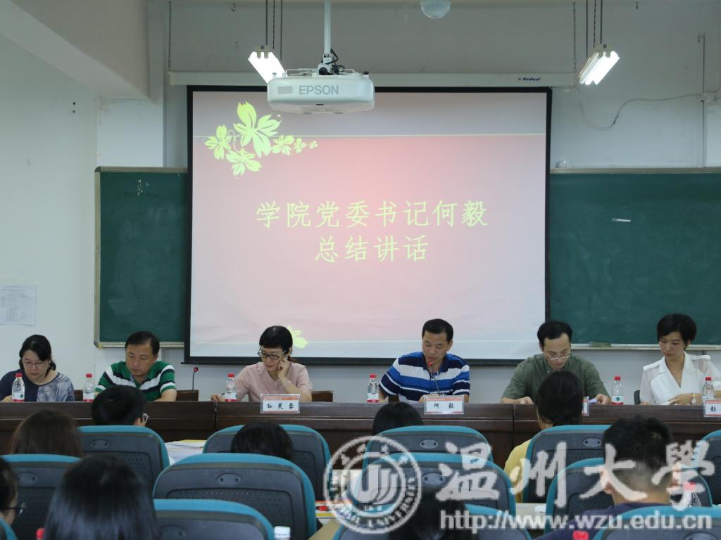 何毅书记作总结讲话。何毅充分肯定了学院教师在这个“暑”而不“假”的假期中为学院、学生工作做出的贡献。在学校奋力推进“三大目标”的新形势下,他从三个方面分析了本次会议的重要意义。首先,这是在全面推进新时代高校思想政治教育工作的形势下召开的一次重要会议。何书记强调,班主任作为大学生思想政治教育和学生管理工作的主要实施者,是协助辅导员开展工作、进行学生管理服务的主要力量,肩负着为国育才、为国储才的光荣使命。其次,这是在全校奋力实现三大目标和落实全国全省系列重要会议精神的背景下召开的一次重要会议。会议既是暑期系列会议精神的传达,也是泥巴影院 “三全育人”综合改革试点的动员部署,他希望能够将“三全育人”的十大方面工作扎扎实实地推进下去,通过一段时间的努力,形成“三全育人”的良好态势。最后,这次会议也是泥巴影院 党建与思想政治工作站在新起点、面临新形势的背景下召开的一次重要会议。会上,何书记结合当前的形势,对班主任工作提出几点建议:一是要始终坚持正确的方向引领;二是要引导学生树立正确的发展导向;三是要沉下身段真正深入班级群体。