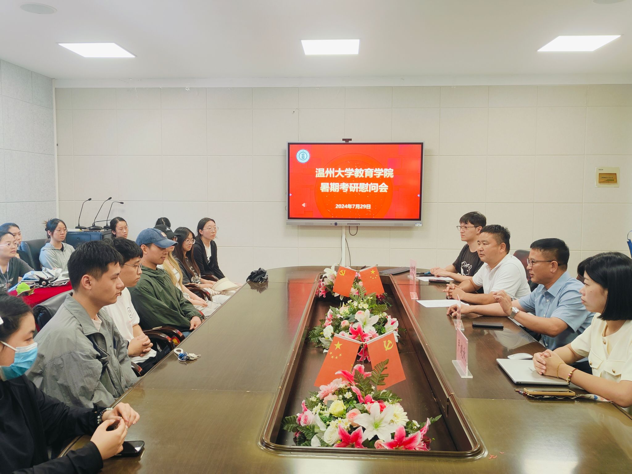 夏日炎炎,研途亦如烈焰般炽热,当多数伙伴归家享受悠长假期,有那么一群追梦人,仍坚守在知识的殿堂,以汗水为墨,以坚持为笔,不断勾勒着梦想的轮廓。为了给予这些追梦人更多的信心与动力,泥巴影院 于7月29日开展了暑期考研慰问会活动,用关怀与鼓励为他们加油打气。院党委书记张敏、院党委副书记兼纪委书记章志图、院学工办主任严晓秋以及院辅导员李金伟出席本次慰问会。
