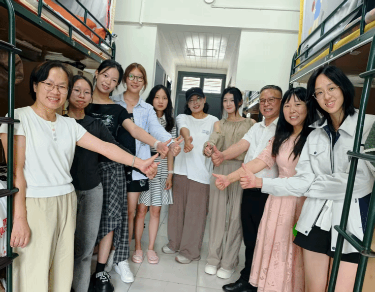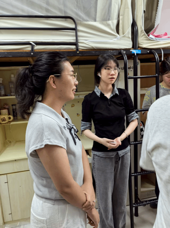 领导老师、辅导员们走访寝室。期间,领导老师们亲切地和学生们进行沟通,一是悉心解答新生们提出的疑问,希望寝室同学互相帮助,并详细讲解宿舍规则;二是殷切嘱咐同学们安全第一,提高防诈骗意识,注意用电安全、食品安全、财产安全;三是引导同学积极表达自己所思所想,就学校初印象进行了交流,并祝福同学们能在温大收获成长。