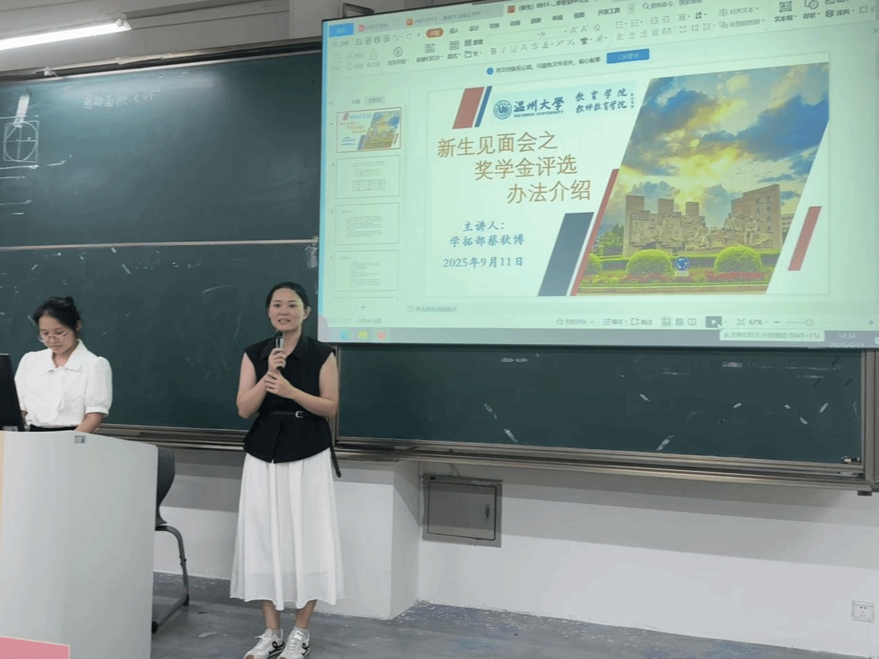 见面会伊始,辅导员吴琪琪老师逐一介绍小教系班主任、辅导员及任课教师,不仅拉近了师生距离,更让新生直观感受到专业雄厚的师资力量。随后,徐倩倩老师与学拓部部长详细解读奖学金评定细则,清晰的激励机制点燃了新生的学习斗志。新生代表邹奇轩同学分享了自己的理想信念,自己将与同学们肩负起新时代教育人才培养的使命。