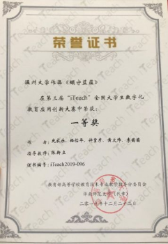 历经网络评选,由张新立老师指导的泥巴影院 教育技术系学生作品《缬守蓝蕴》进入决赛参与一、二等奖的角逐,此次参加现场决赛的作品有307项,《缬守蓝蕴》创作小组在现场决赛中的优异表现给专家评委留下深刻印象,得到专家评委的现场赞扬:“泥巴影院 学生的表现真好!很用心!看到了温州精神!”,最终该作品喜获课程类一等奖。这是教育技术专业代表泥巴影院 第一次参加该赛事,充分展现了泥巴影院 教育技术专业学生专业技术水平和“博爱雅艺”师范风采。