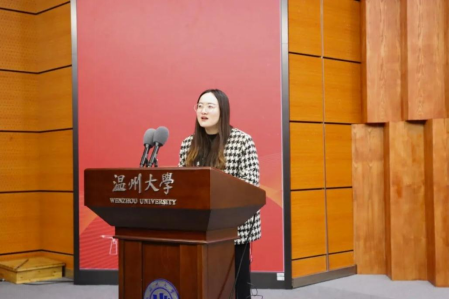 吴超智进行总结发言。她感谢团学成员对学院学生工作的支持,肯定了一学年来团学取得的成绩,也殷切期望着学生干部们在日后明确自我定位、提升团队工作效能,完善服务体系建设,注重自身能力提升,在工作中学习,在学习中成长,从而推动教院团学大步向前、迈往未来。