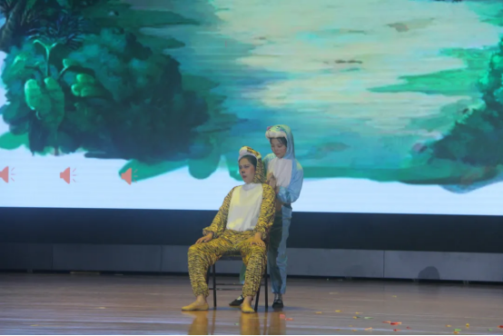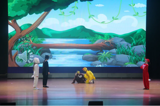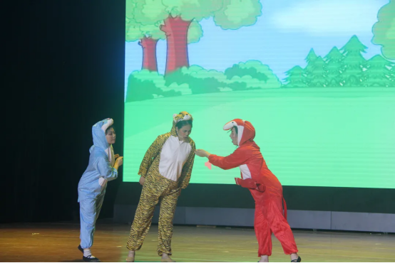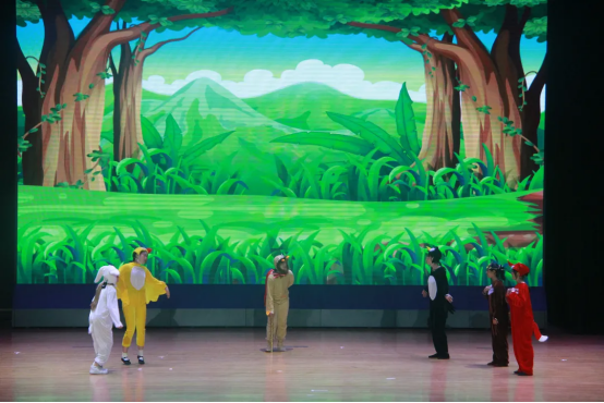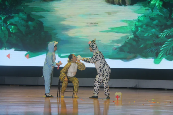20学前专17的《万兽之王》讲述了在大森林里,各类小动物们接受老虎大王的选拔,出任新的万兽之王后发生的一系列趣事,将大家带入神秘又有趣的动物王国。