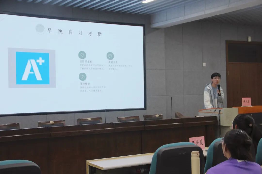 黄文哲作为一名资深纪检委员,用幽默风趣的语言就课堂考勤、早晚自习考勤等问题提出了相关解决方法,包括提前通知、拍照接龙、联系室友、正常点名等,并为大家提供了自己的一套通用方法来帮助纪检委员快速而高效地完成任务。