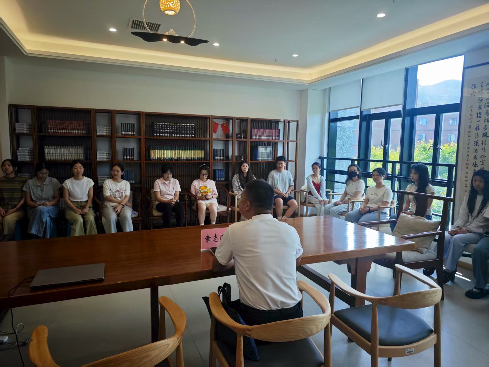 随后,章志图书记发表讲话,对学子们暑期坚守备考、为梦想拼搏的精神给予高度肯定与赞扬。“选择考研,是对自我的挑战,更是对未来的期许。” 他勉励学子们,备考过程或许充满艰辛,但 “心若有所向往,何惧道阻且长”,只要保持坚定的信念和踏实的脚步,每一份付出都将成为通往成功的基石。同时,他也贴心叮嘱大家:暑期天气炎热,要注意劳逸结合,合理安排作息时间,既要保证学习效率,也要照顾好自身健康,做好防暑降温;遇到压力或困难时,不要独自承受,学院永远是大家最坚实的后盾。温暖的话语里满含关怀,让在场学子倍感振奋。