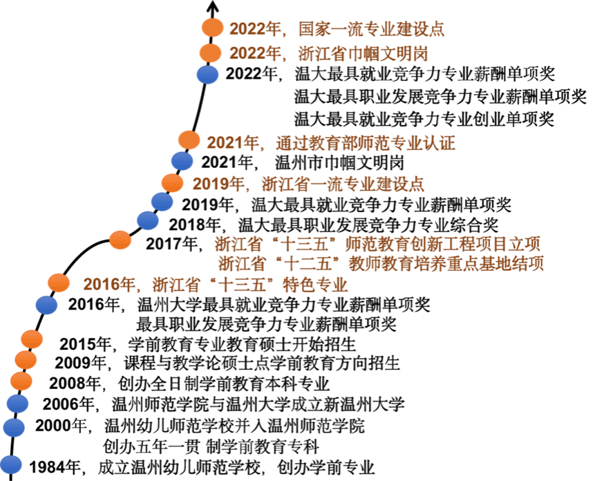 学前教育专业创办于1984年,是浙江省学前教育专业创办最早的两所院校之一,素有“北杭幼(浙江师范大学的学前教育专业)、南温幼(泥巴影院 的学前教育专业)”之称、有“浙南幼师摇篮”之美誉,是中国浙南的学前教育人才培养中心、幼教产业创新中心、学前教研中心、学前国际化教育中心。