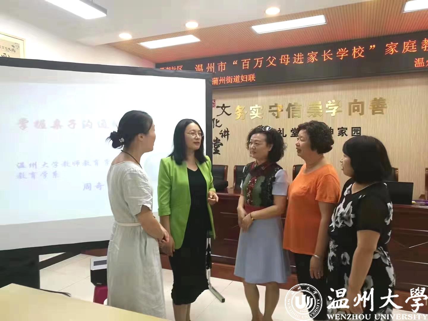 记得,那是1990年的秋天,初为人师的周老师走进市区蒲鞋市小学,教室里坐满了学生家长,除两位请假之外,到场率98%。人们愿意来听一次“家庭教育”的课,可见经商致富的温州人,很重视孩子的教育。周奇老师深受鼓励,更加坚定了她要走出校门服务社会、服务家长的信心。令人印象最深刻的,是一位老大爷的举动。在她的一场讲座开始前,这位头发花白的老大爷上前来问,能不能使用录音笔录音。他想把整个课程都录下来,交给自己的儿子和媳妇观看学习。周奇老师愉快地答应下来。没想到的是,在接下来的第二场、第三场讲座中,仍旧出现了老大爷的身影。在课后的交流中,老大爷告诉周老师,儿子常年在外地经商,孙子刚上小学,“隔代教育”总会出现这样那样的问题,所以就特地过来请教专家。老大爷的用心深深感动了在场家长,周奇老师也深感责任在肩。