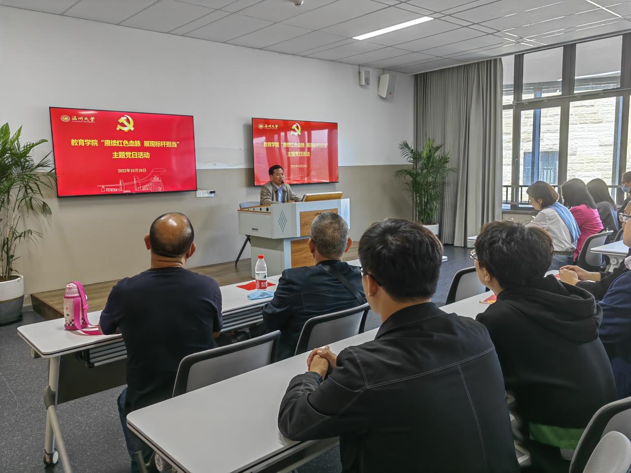 小学教育系党支部书记刘海霞回顾了自己三次到洞头学习的经历,谈到海霞民兵连精神就是是听党话,爱国卫家乡。温州是大家挥洒汗水,成就一番教育事业的热土。深入学习贯彻党的二十大精神,要带头将小我和大我融合,开创新的事业蓝图。