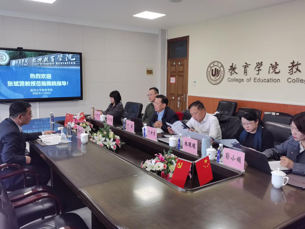 学院党委书记何毅向张斌贤教授介绍了学院的基本情况和近些年学院在师资队伍、学科建设、专业发展、人才培养等方面取得的成绩,着重就博士点申报事宜向张斌贤教授进行咨询请教。