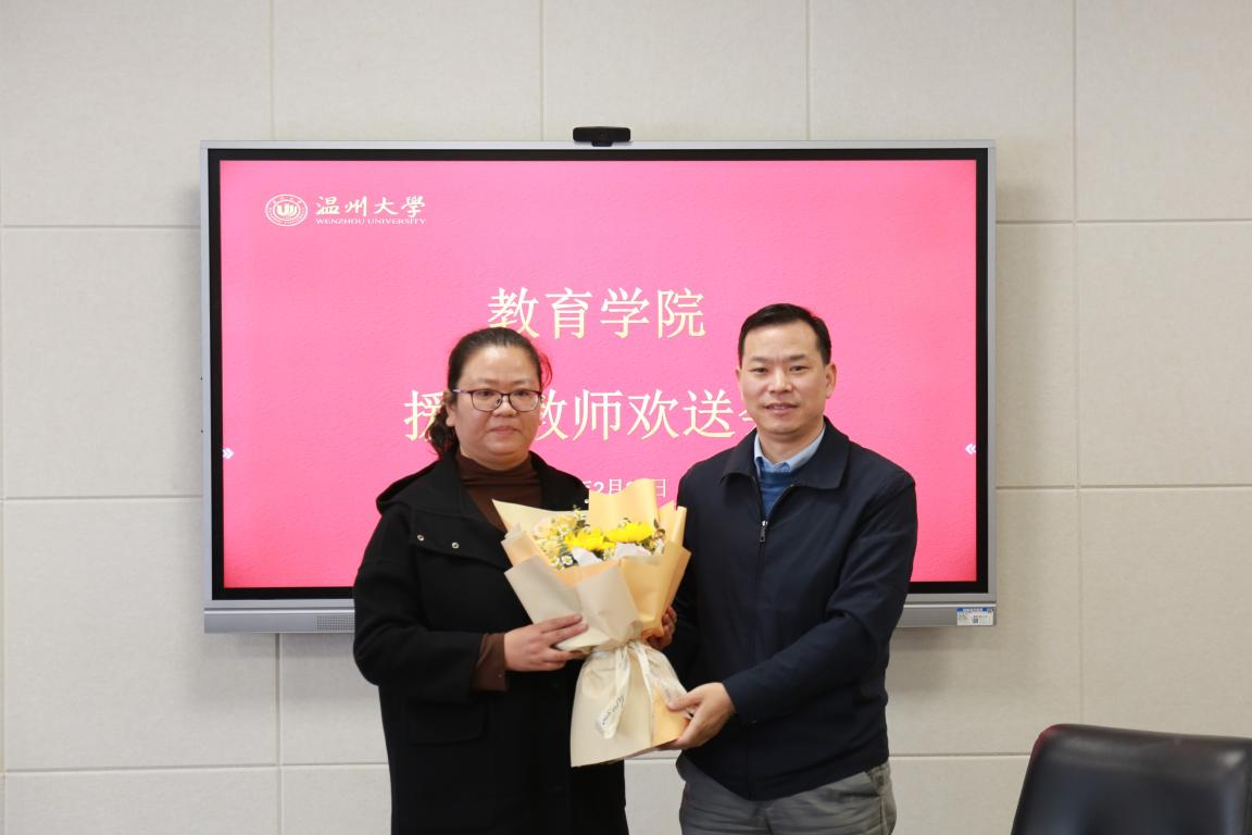 欢送会伊始,何书记祝贺刘海霞老师入选第十一批援疆教师,为刘海霞老师献上鲜花,并表达了学院对她未来发展的期盼。