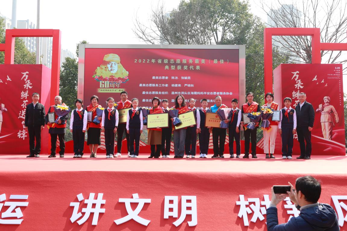 3月5日上午,温州市2023年“万朵鲜花送雷锋”志愿服务主题月暨迎亚运城市志愿服务行动启动仪式在龙湾区雷锋广场举行。