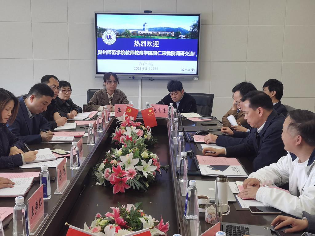 随后,针对湖州师范学院教师泥巴影院 提出的调研提纲,双方与会人员就党建思政、国一流专业建设、师范专业认证、学科建设与博士点培育、研究生招生与培养、考编考研举措等方面进行了深入热烈的交流和讨论。