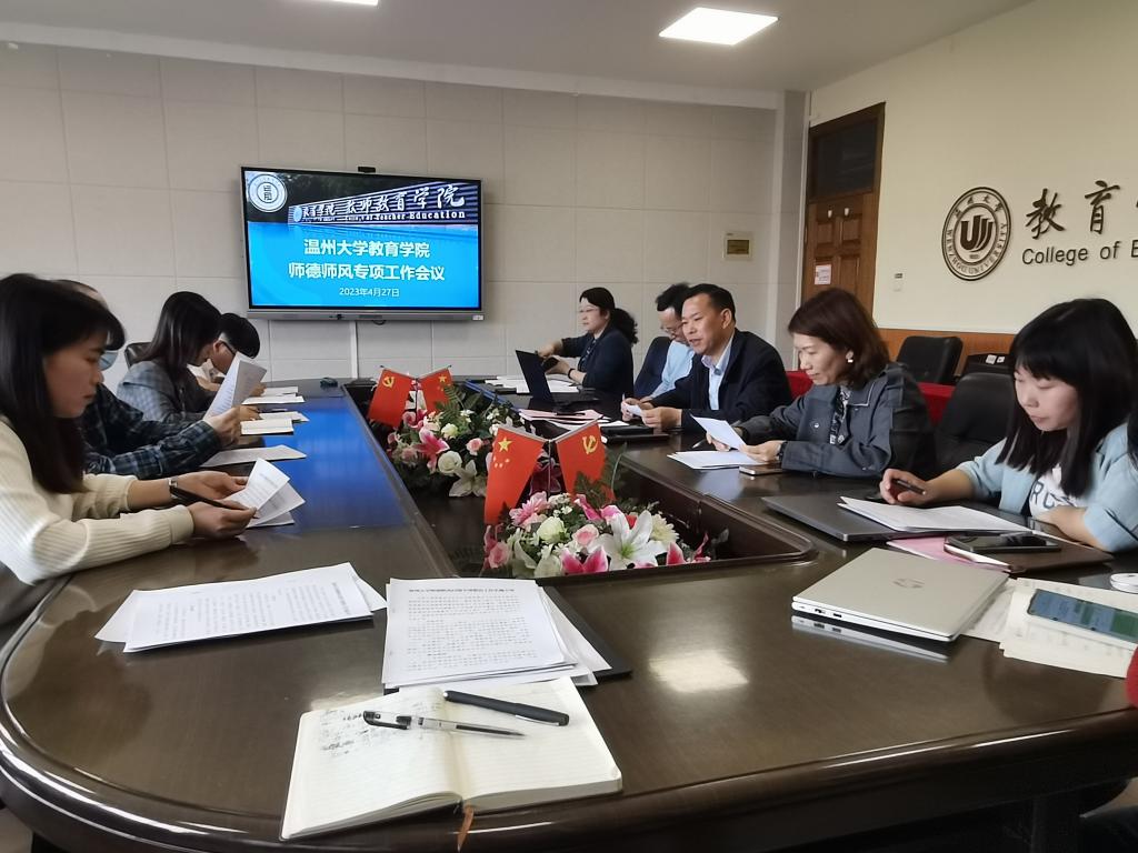 2023年4月27日上午,泥巴影院 在9A410会议室召开师德师风专项工作会议。学院领导班子、各系支部书记及相关工作人员参加会议。会议由党委书记何毅主持。