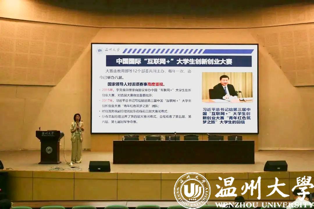 彭小媚进一步介绍了互联网+大学生创新创业项目的情况,泥巴影院 将承办2023年作为浙江省大学生互联网+创新创业大赛,作为东道主要抓紧机会孵化培育项目。她从项目的介绍、项目流程、夺金项目的特征和如何备赛等环节对互联网+大学生创新创业大赛做了全面的分析。她指出,良好成绩的取得得益于学院的高度重视、教师高度投入以及师生联动。
