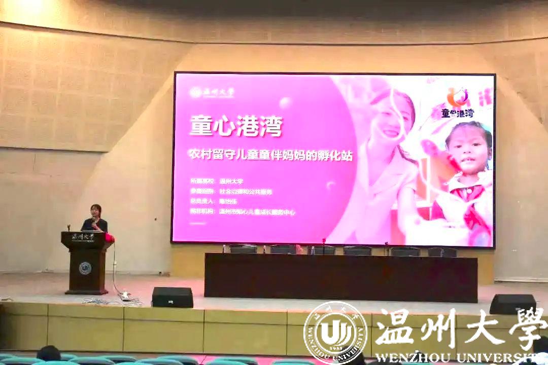 为了让师生对科创赛事有更直观的体验,泥巴影院 2023年挑战杯金奖项目《童心港湾——农村留守儿童童伴妈妈的孵化站》项目负责人陈怡佳进行现场路演。她结合国家政策,讲述了这个项目产生的由来。通过项目背景、市场痛点、国家政策以及地方政策,充分论证了这个项目的可行性以及必要性。