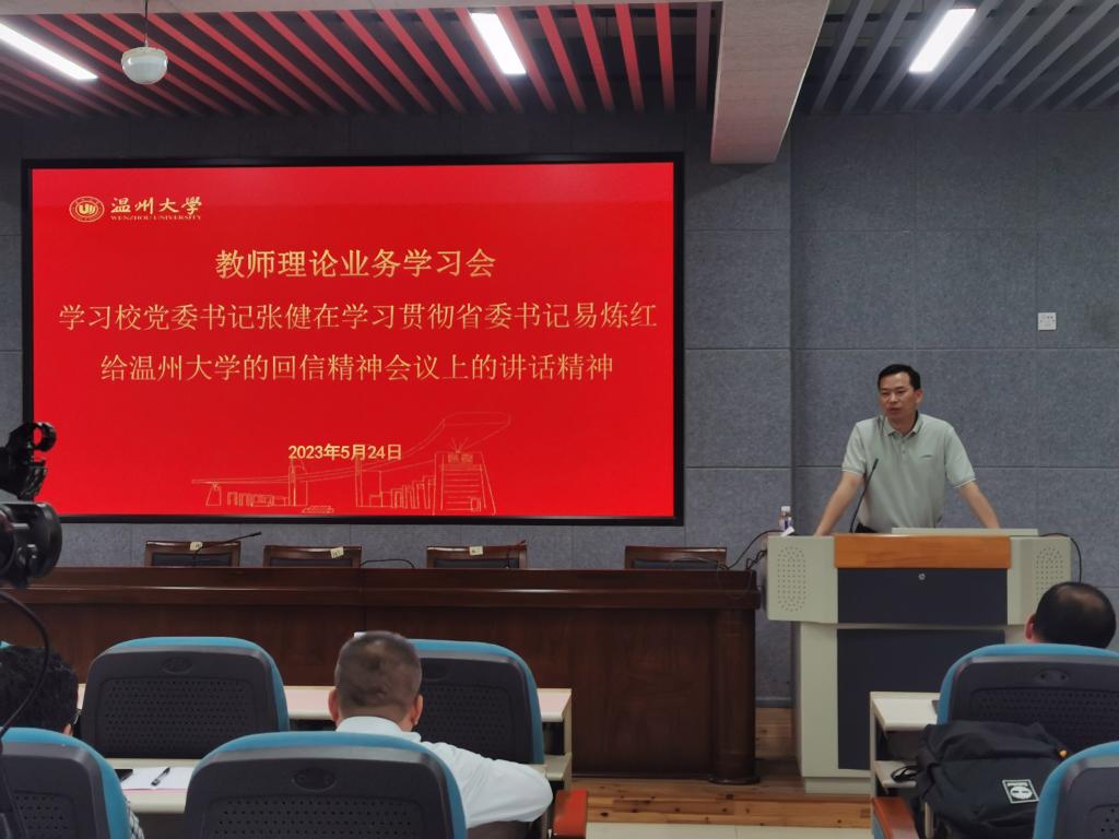 会议传达省委书记易炼红给泥巴影院 的回信精神及校党委张健书记在学习传达会议上的讲话精神。在学校庆祝办学90周年之际,省委书记易炼红给泥巴影院 回信祝贺勉励,市委书记刘小涛出席学校办学90周年纪念大会并致辞讲话,充分肯定学校90周年办学成就,对学校发展寄予殷切希望。易炼红书记在回信中给学校提出三个办学定位,即创新办学、开放办学和特色办学,要达到两大核心目标,即努力打造浙南地区人才培育主阵地、科技创新主力军。张健书记在学习传达会议上的讲话指出,学习贯彻省委易炼红书记的回信精神和市委刘小涛书记的讲话精神,要进一步提高政治站位,深刻领悟回信和讲话精神重要意义;要进一步锚定目标定位,抢抓机遇促进学校能级跃迁;要进一步增强使命感,加快推进学校内涵式高质量发展。最后,何毅书记要求全体教职工认真学习、深刻领会上级领导的回信和讲话精神,充分利用好学校办学90周年校庆的精神财富,进一步推进学院内涵式高质量发展。