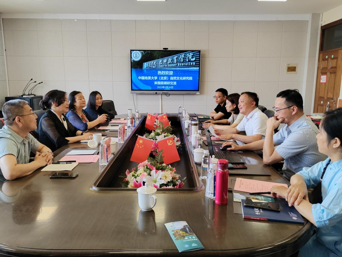 5月26日下午,中国地质大学(北京)自然文化研究院副院长刘晓鸿一行四人来访交流。学院副院长叶新东、王志强,党委副书记彭小媚,相关老师参加座谈交流会。