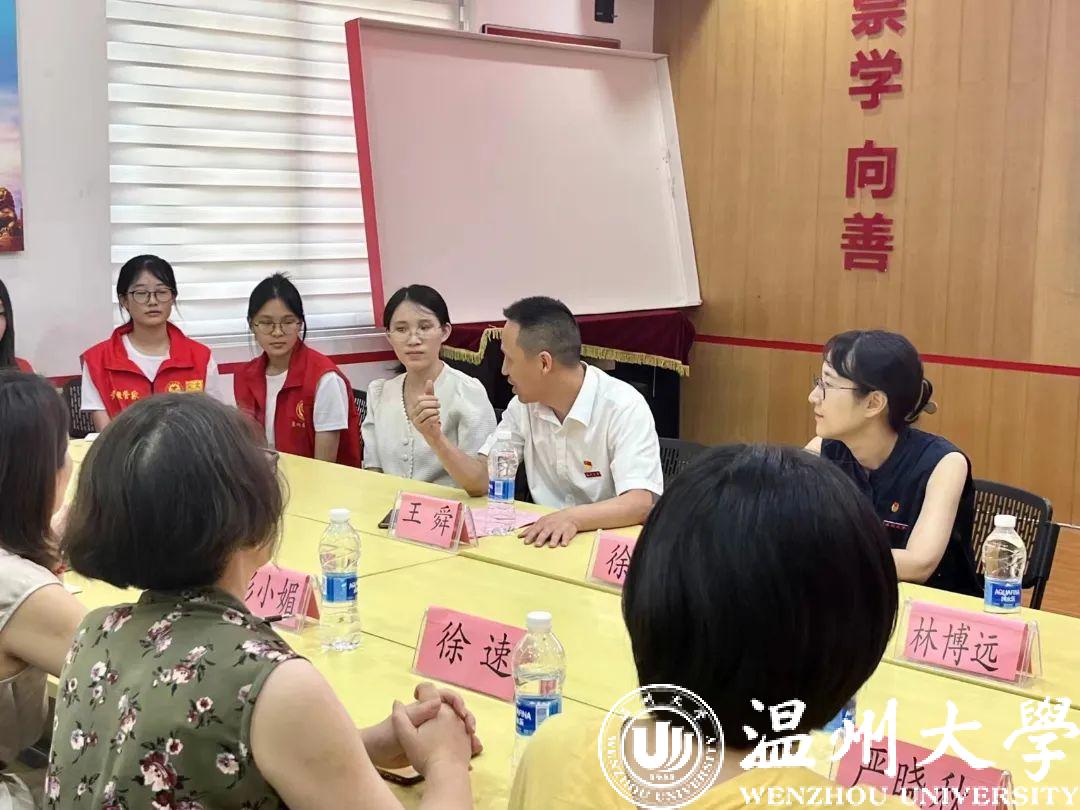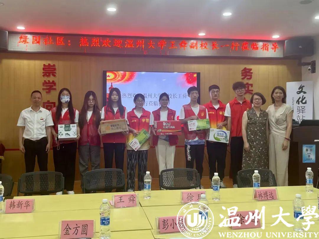 奋进红七月,服务爱先行。2023年7月14日,泥巴影院 党委委员、副校长王舜一行来到鹿城绿园社区走访慰问“智慧之花”社会实践队。实践队指导老师徐速教授、泥巴影院 党委副书记彭小媚、校团委副书记徐瑶、泥巴影院 学工办主任兼团委书记严晓秋、校团委办公室副主任韩新华、心理系党支部书记杜健陪同慰问,并举办了一场别开生面的座谈会,为“智慧之花”实践队之旅添上了浓墨重彩的一笔。绿园社区支部副书记金方圆等热情接待王舜副校长一行。