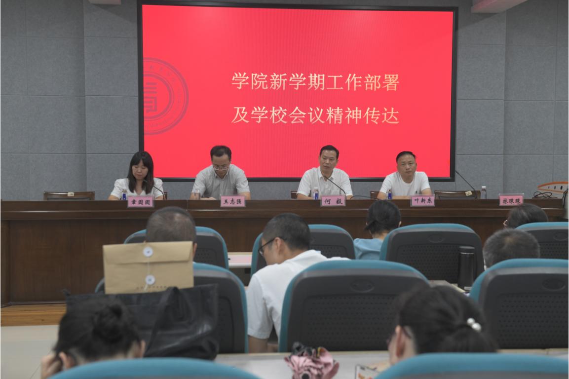大会最后,学院进行新学期工作部署及学校会议精神传达。叶新东副院长、王志强副院长、章园园副书记结合各自分管工作,对新学期教学工作、科学研究、学科建设、学生培养、教学督导等进行部署,并提出具体要求。