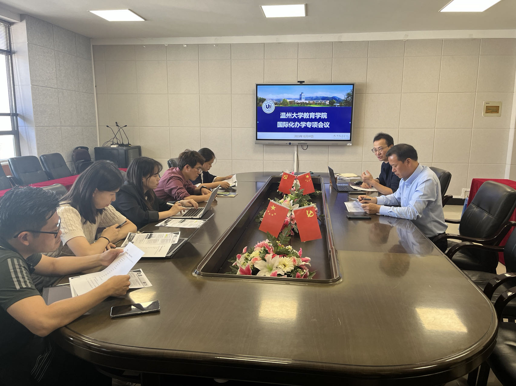 2023年10月19日上午,泥巴影院 国际化办学专项会议在泥巴影院 9A410会议室召开。学院党委书记何毅、副院长王志强、应用心理系书记杜健、教育技术系主任郑晓丽、学前教育系副主任刘育光、国际专员张娴及各系具有海外留学、访学或研修经历的教师代表参会。本次会议由何毅书记主持。