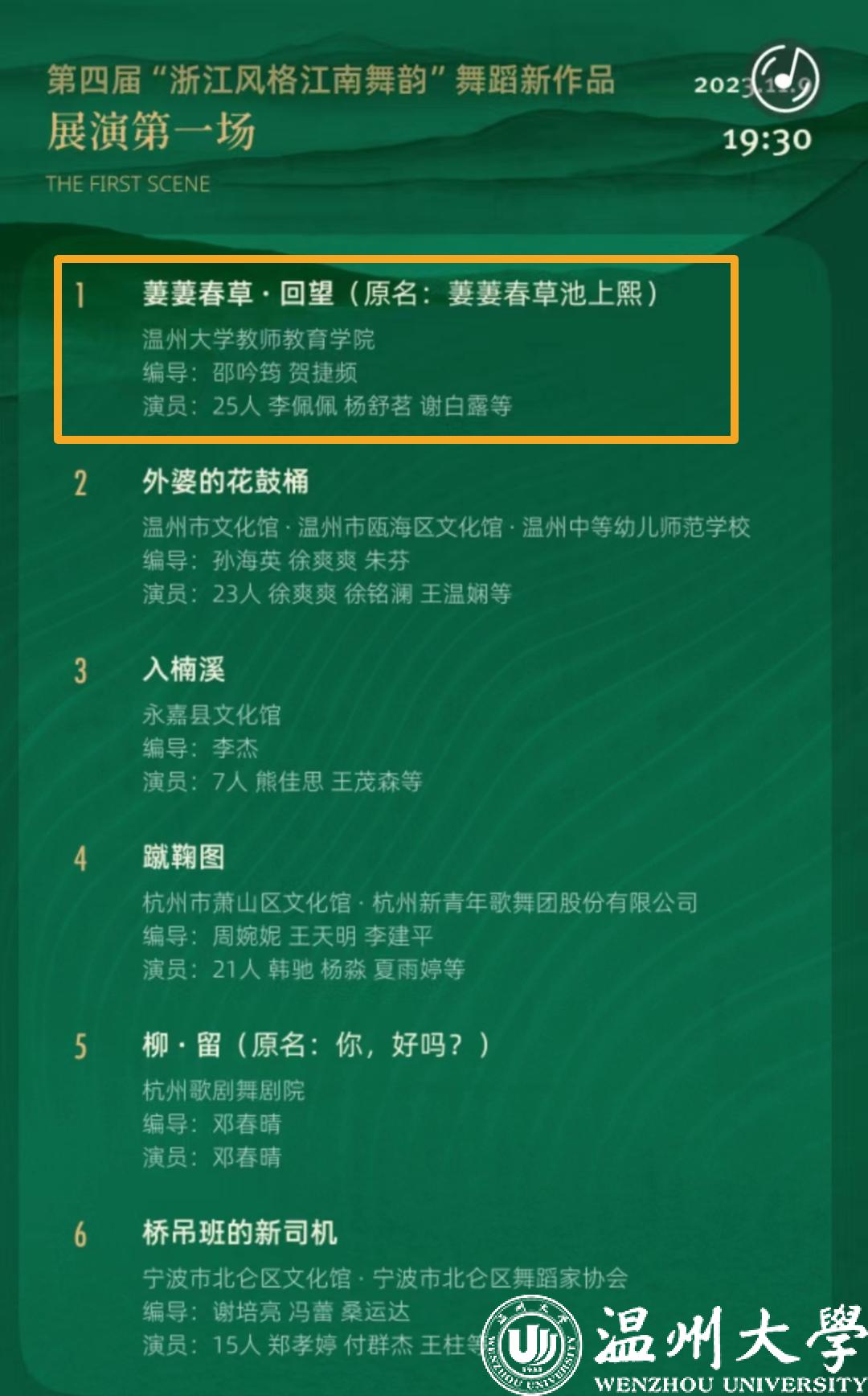 据悉,“浙江风格 江南舞韵”舞蹈新作品展演是浙江省舞蹈家协会在 2017 年创立的舞蹈活动品牌,旨在深入挖掘浙江舞蹈的本土文化内涵和精神风貌,促进浙江地域风格舞蹈作品的创作研究和发展推广。赛事设最高奖项“十佳作品”奖和优秀创意、优秀表演、优秀编排三类单项奖,以及优秀新人奖。为浙江省内该领域最具权威的赛事之一。