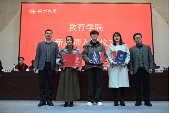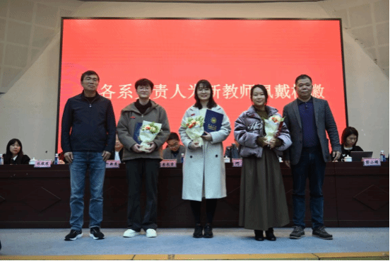 首先,学院举行新教师入职仪式。李长吉院长、何毅书记为马婧妮等5位新入职教师颁发入职纪念证书、教师师德承诺书、师德师风建设制度摘要等,并合影留念。各系、科室负责人为新教师佩戴校徽,送上鲜花,表达对新入职老师的热烈欢迎和殷切期望。