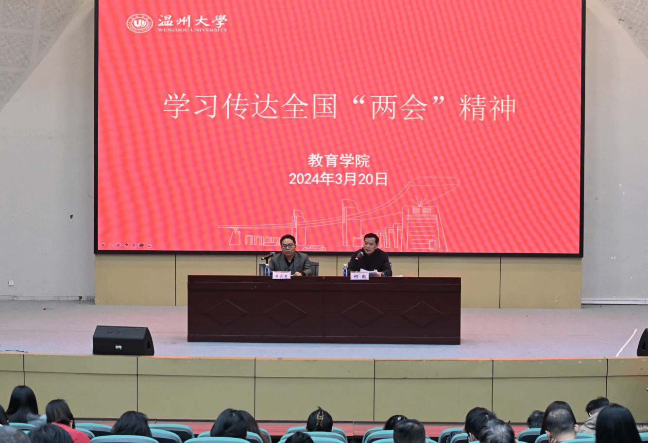 何毅书记学习传达全国“两会”精神。何书记对习近平总书记参加审议江苏代表团、解放军和武警部队代表团、民革科技界环境资源界代表团时的重要讲话精神进行传达解读,领学2023年政府工作报告。何书记强调,全体教职工要把深入学习贯彻两会精神作为近期重要政治任务,并将其与学院事业发展紧密结合,牢牢把握学院高质量发展的任务要求。会议还传达了学校2024年春季学期党务工作暨基层党建工作会议精神。