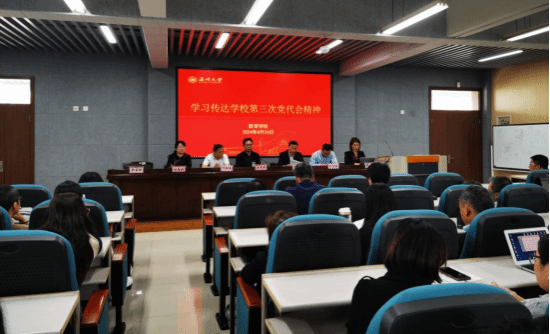 会议传达学习学校第三次党代会精神。党委书记何毅领学。会议指出,学校党委书记钱强同志在学校党代会上所作的《牢记嘱托担使命 继往开来谱新篇 为建设高水平大学争创“双一流”高校而团结奋进》的工作报告,既是对过去七年学校发展所作的全面总结,也是新一轮发展的纲领性、指导性文件,报告内容丰富、立意深远,未来发展目标明确、实施路径清晰。会议要求全院教职员工要锚定学校“创建国内一流、国际知名,特色鲜明的高水平研究教学型大学”这个发展定位和学校确立的战略目标,抢抓机遇、乘势而上,主动作为、勇担使命,争拼赶超,谱写学院高质量发展新篇章。