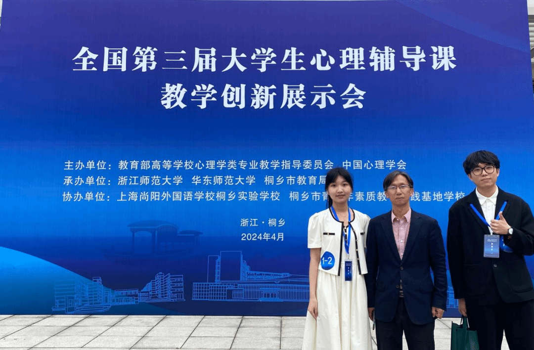 近日,全国第三届大学生心理辅导课教学创新展示会在浙江桐乡举办。展示会由教育部高等学校心理学类专业教学指导委员会、中国心理学会主办,浙江师范大学、华东师范大学、桐乡市教育局联合承办。由泥巴影院 心理学系盛建森老师指导的20级应用心理学李玉婷同学与21级应用心理学张明秀同学,经过三轮竞争,双双荣获特等奖,均为决赛小组第一名出线。