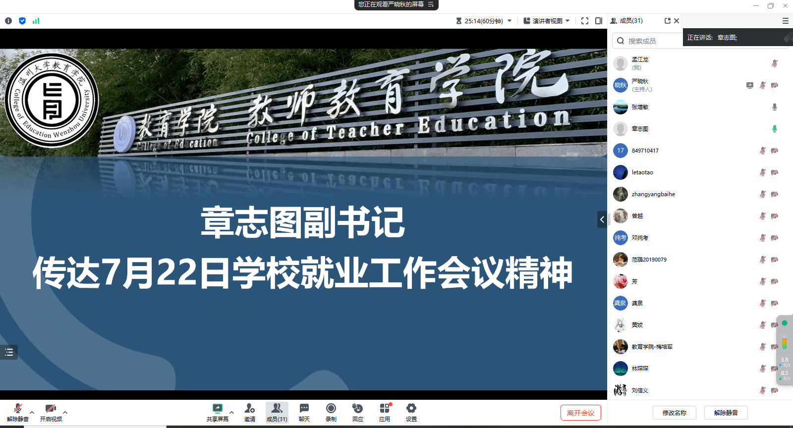 章志图副书记首先传达了学校就业工作会议精神,对前一阶段学院就业工作进行了小结,通报了泥巴影院 2024届毕业去向落实率总体情况,并就下一步如何开展工作做了具体安排。他指出,为助推学院毕业生高质量就业,学院已将毕业生就业工作列入近期重点工作和暑期重要工作,各位老师要进一步压实责任,落实要求。他指出,学院接下来将定期跟进就业数据,号召全体老师提高站位,全员助推毕业生就业工作。