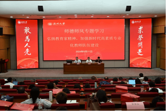 9月11日下午,泥巴影院 在育英图书馆二楼报告厅召开2024年秋季新学期教职工大会暨理论学习会。学院领导班子及全体教职员工参加本次会议。会议由院党委书记张敏主持。