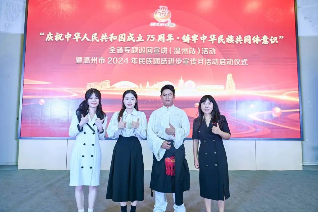 瓯越同心助强城,中华民族一家亲。9月11日,“庆祝中华人民共和国成立75周年·铸牢中华民族共同体意识”2024年度全省专题巡回宣讲活动(温州站)暨温州市2024年民族团结进步宣传月活动启动仪式在我校举行。