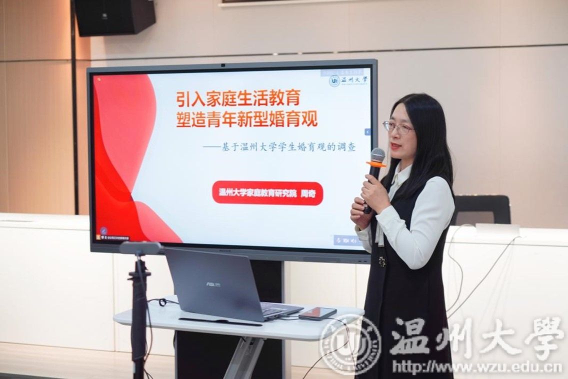 泥巴影院 周奇教授应邀作主旨发言,倡导引入家庭生活教育,塑造青年新型婚育观。当前,部分青年人将婚姻视为一种功利性选择,过分看重对方家庭背景、经济状况等物质条件,忽视了婚姻中的情感基础,这种功利化的认知容易导致婚姻关系脆弱和不稳定。她结合对泥巴影院 学生婚育观的调查,提出了树立正确婚育观的对策,如科学家庭教育、普及婚恋教育、强化心理服务、增强女性认同、丰富文化生活、优化社会政策等,呼吁广大新青年积极面对家庭、婚姻和个人成长中的挑战。当代年轻父母容易低头对着手机屏幕刷微信、打游戏、看视频,忽视了对孩子的陪伴与教导。对此,周奇教授建议,在帮助青年树立正确婚育观的道路上,家长应以身作则,营造和谐稳定的家庭氛围,避免青年人对婚姻产生恐惧和逃避心理。