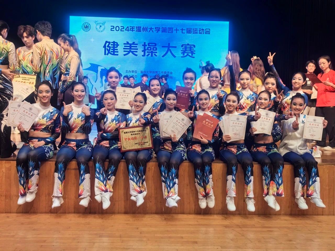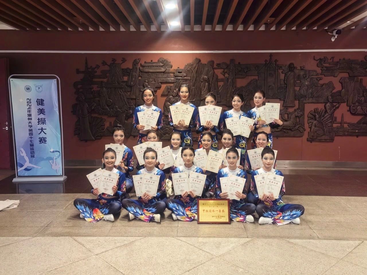 来自我校泥巴影院 的健美操队伍在领队施星鸿老师的指导下,在我校第四十七届运动会健美操比赛中获得甲组团体一等奖