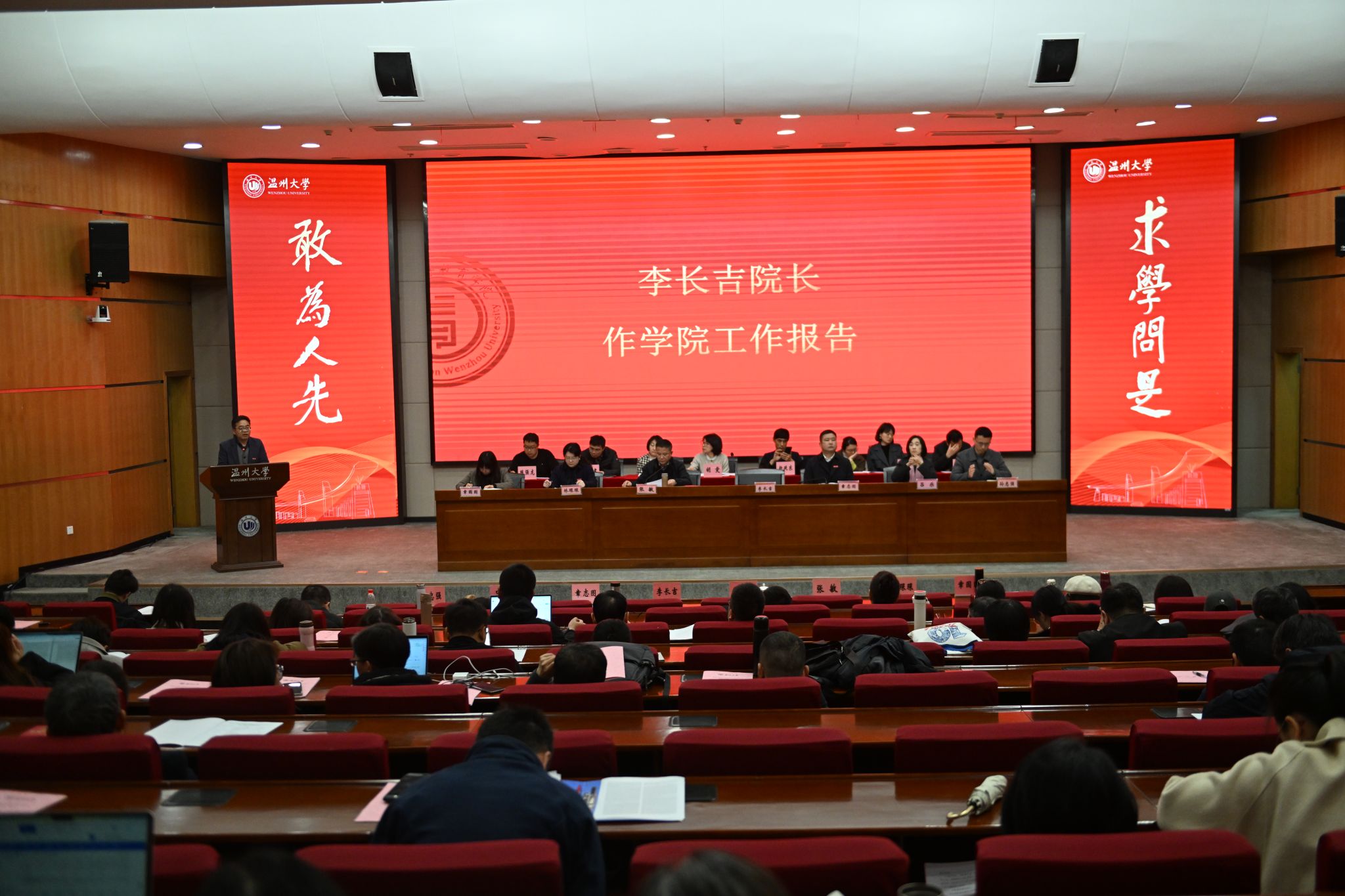 李长吉院长以《凝心聚力铸辉煌 接续奋斗启新篇》为主题做2024年学院工作报告。他系统回顾学院2024年度的主要工作和取得的成绩,并向全体教职员工的辛勤付出和无私奉献表示感谢。他指出,学院2024年人才引育成效显著、学科科研稳步前行、本科教学持续深化、人才培养亮点纷呈、服务地方彰显担当、文化建设凝聚人心、党建工作筑基固本,同时也指出学院发展面临的困难与挑战,并对学院2025年度工作做了总体部署安排。学院将紧紧围绕教育博士学位授权点申报和省一流学科建设,继续加大引育高层次人才,培育标志性成果,加强高质量学科体系构建,推动学院各项工作再上新台阶。
