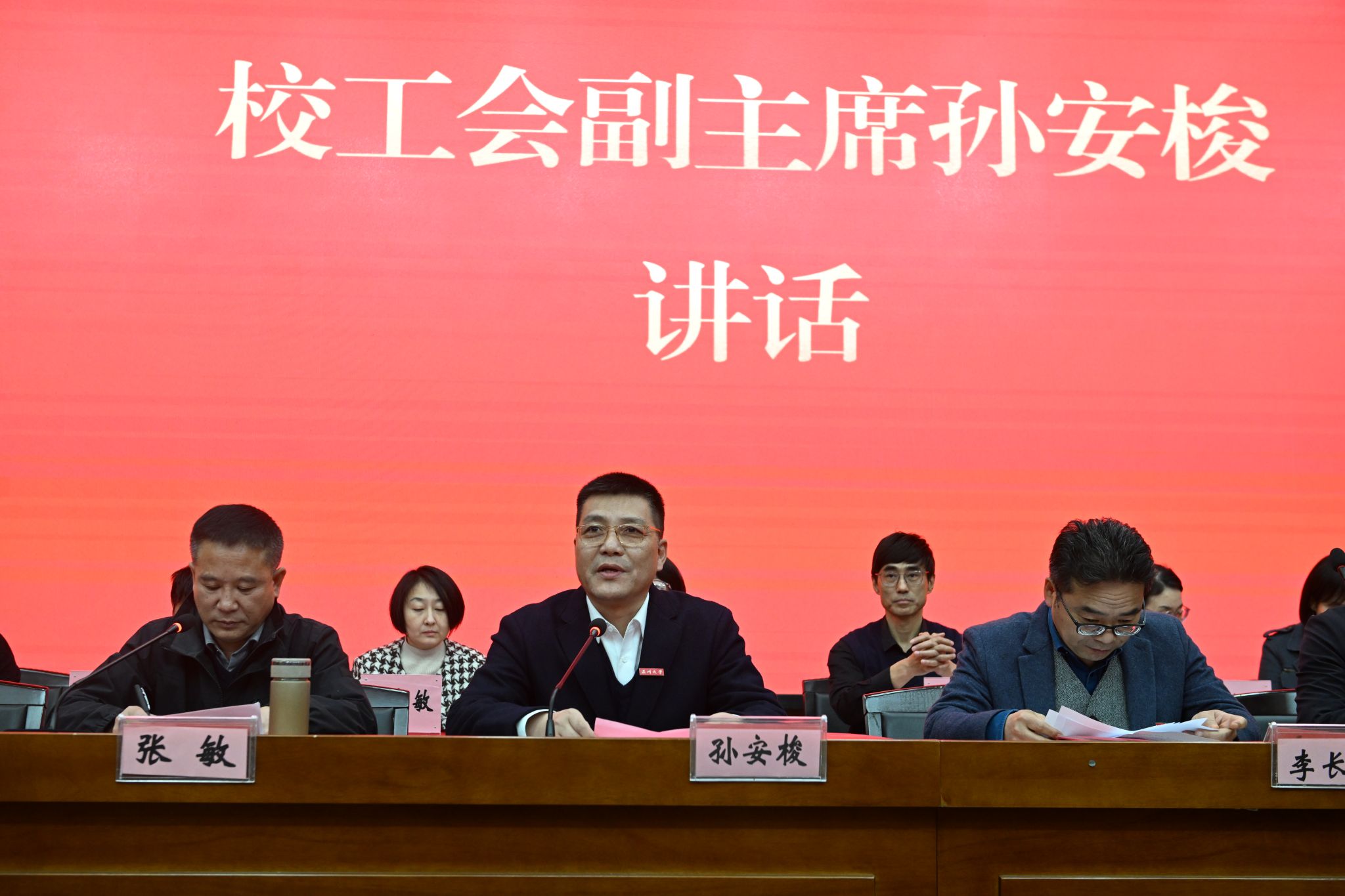 校工会副主席孙安梭出席并讲话。他指出,过去一年,泥巴影院 在人才培养、学科建设、科学研究、社会服务等方面取得了丰硕成果,成绩的取得是学院党政班子科学谋划的结果,更是全体教职工团结奋斗的结晶。他代表学校工会提出三点希望,一是坚持党的领导,确保政治方向;二是聚焦主责主业,服务发展大局;三是坚持以人为本,维护教师权益。孙主席表示,学校工会将始终与学院同心同行,充分发挥桥梁纽带作用,全力支持学院改革发展与民主建设。