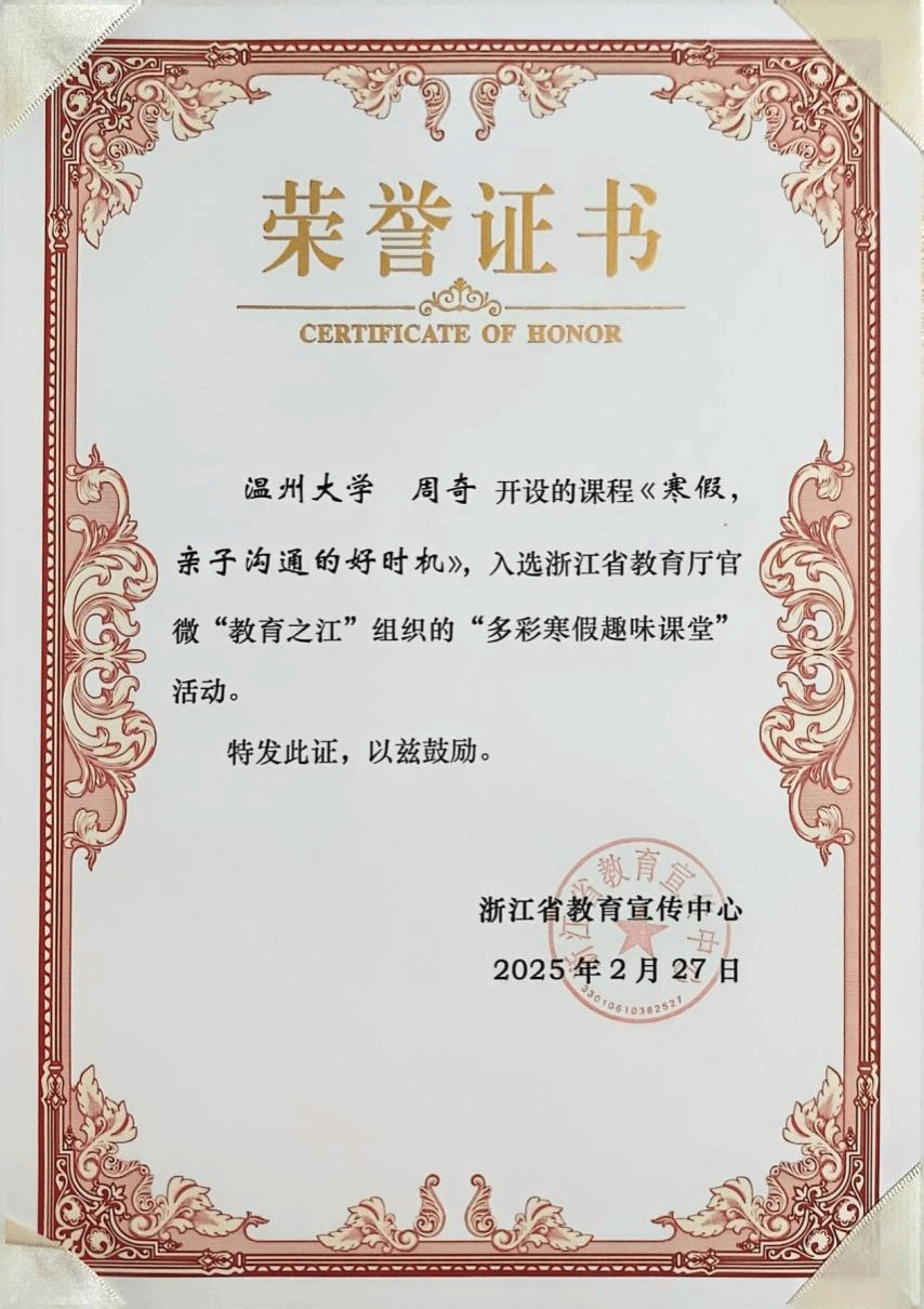 寒假期间,泥巴影院 周奇老师受邀参加浙江省教育厅官微“教育之江”组织的“多彩寒假趣味课堂”活动,为全省中小学家长做《寒假,亲子沟通的好时机》的家庭教育视频分享。
