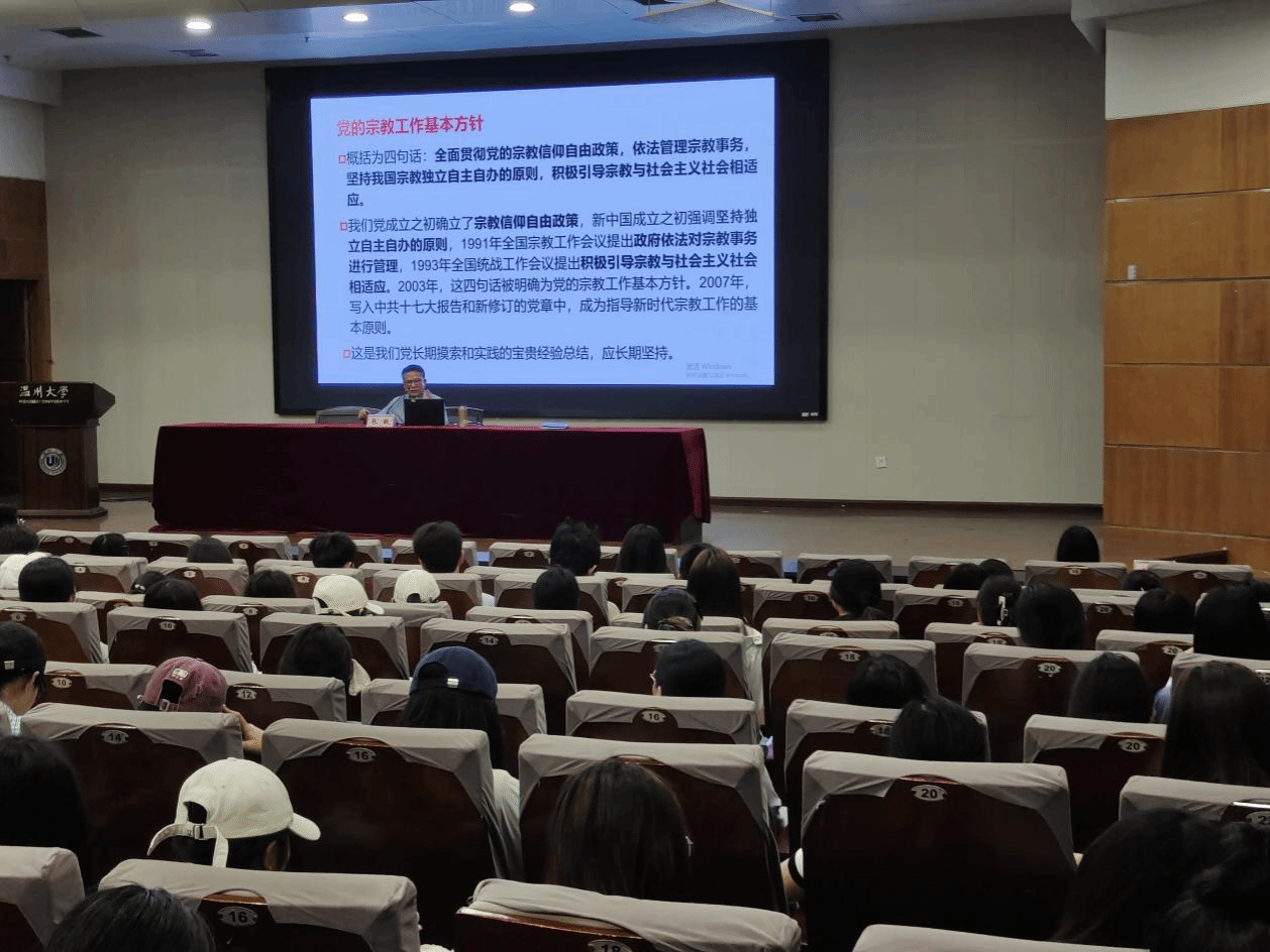培训会上,张敏老师开展《马克思主义宗教观与党的宗教政策解读》讲座,向寝室长讲解抵御与防范宗教向校园渗透的法律依据,传授工作经验与工作方法,压实寝室长工作责任,努力化解校园意识形态风险。