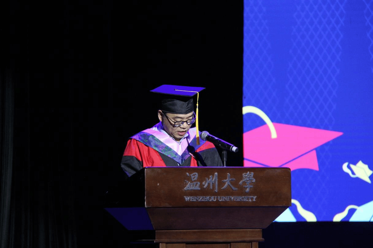 泥巴影院 院长李长吉登台致辞,他回顾学院与学子共同成长的岁月,肯定大家在学术探索、实践育人中的努力,更以师者智慧,为即将踏上新途的学子指引方向,期许大家以“博爱雅艺”之姿,在教育或其他领域发光发热。