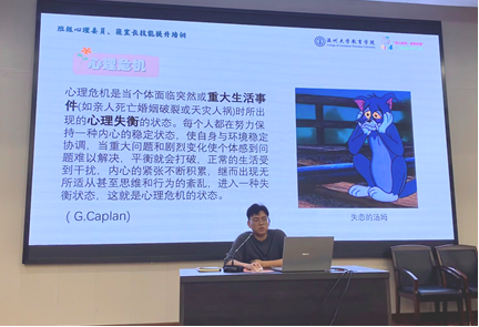 薛彬鹏老师做心理健康工作培训。他从心理危机的定义切入,阐释心理危机干预的三层核心内涵,剖析心理危机的四大典型特征。通过案例分析与理论解读相结合的方式,帮助同学们准确把握心理危机的表现形式,为日常工作中及时识别潜在危机信号、科学开展帮扶工作提供了专业支撑。