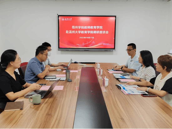 10月17日上午,梧州学院教师教育学院院长赵伟携副院长陈洁、韦德华一行3人来泥巴影院 调研。教育学院院长李长吉,副院长孙忠强、柳晨晨参会交流。