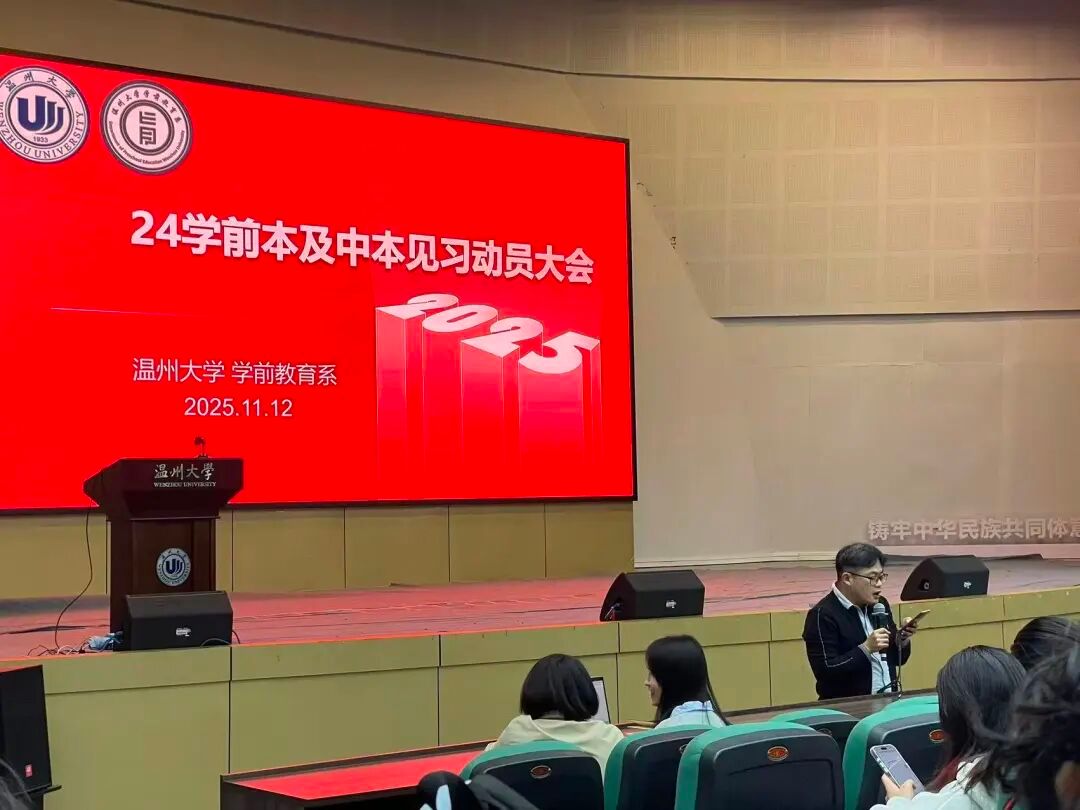 从理论课堂到童真世界,从“准教师”到“实践者”,见习是学前教育专业学生成长路上至关重要的一环。11月12日,泥巴影院 学前教育系在南校9号楼报告厅召开本学期见习动员大会,23学前本及中本、24学前本及中本、25级学前专全体学生齐聚一堂,共同开启这段“以童为镜,以实践为师”的成长之旅。