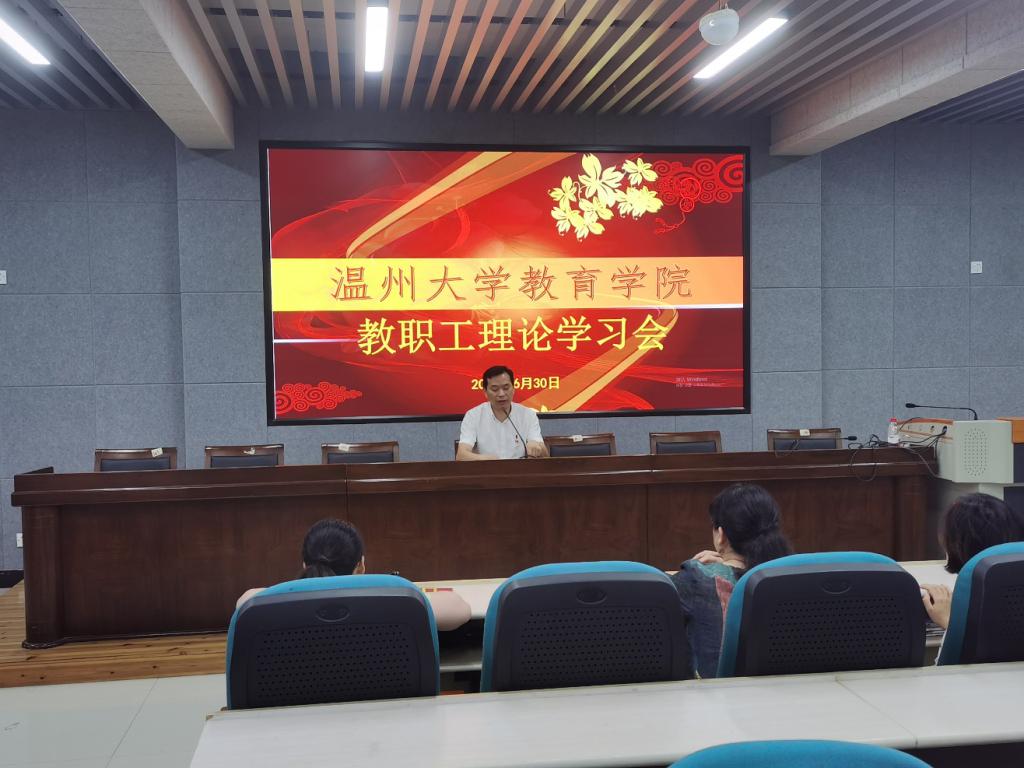 6月30日下午,泥巴影院 在南校区9C301召开全体教职工理论学习会。会议由学院党委书记何毅主持,全体教职工参加。
