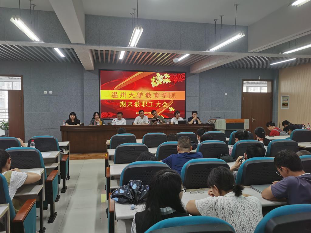 6月30日下午,泥巴影院 在9C301召开期末教职工大会暨干部考核述职会。会议由学院党委书记何毅主持,全院教职工出席会议。