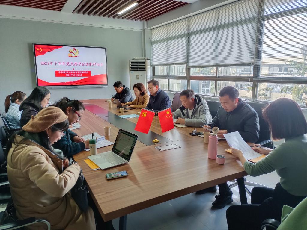 12月29日下午,泥巴影院 2021年下半年教工党支部书记述职评议会在9A402举行,学院党委书记何毅、党委副书记兼纪委书记彭小媚、各教工党支部书记、党建办公室成员参加会议。会议由何毅书记主持。